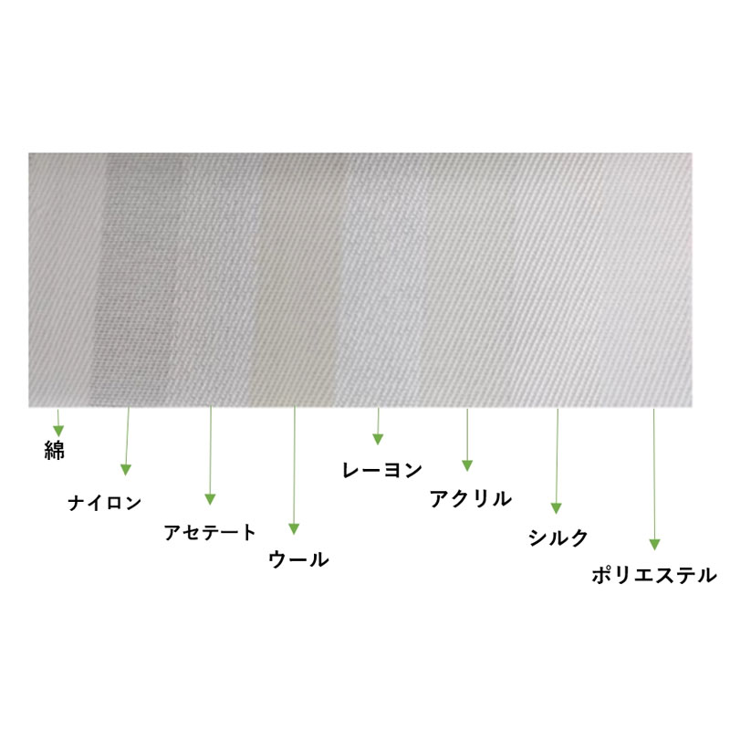 家庭洗濯の際に使う水道水に含まれる塩素、又は水泳プールの消毒に用いられる塩素によって、生地の色が変わる恐れがないかどうかを調(diào)べるために行う試験です。綿の染色に用いられる反応染料や直接染料は塩素によって変色しやすい物もあるので、注意が必要です。