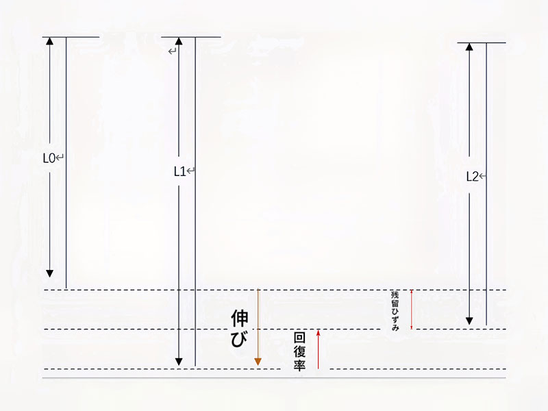 伸長(zhǎng)弾性率(%) = {(L1-L2)/(L1-L0)}×100