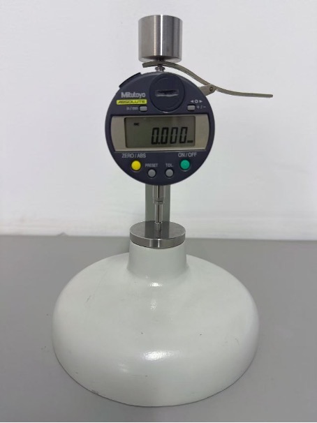 在產(chǎn)品表面平整處用鋒利的刀片裁切材料,使用精密測(cè)厚儀測(cè)定材料厚度。