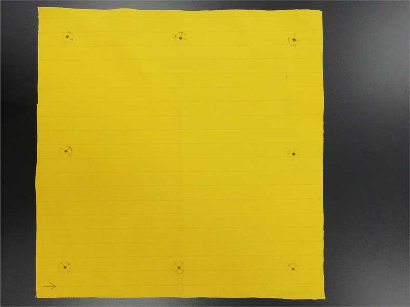 面料本身在機(jī)織工程、編制的工程中留有張力,且在漂白、染色中除張力以外還受水分影響膨脹或受熱水、蒸汽等的熱的影響。不僅如此,在縫制過(guò)程中受熨燙等的蒸汽(熱)、成品之后的洗滌、干洗、熨燙等的影響。受上述情況的影響尺寸會(huì)發(fā)生變化。因此事前進(jìn)行試驗(yàn),作為制作參考的同時(shí),也為預(yù)測(cè)產(chǎn)品的尺寸變化率進(jìn)行試驗(yàn)。